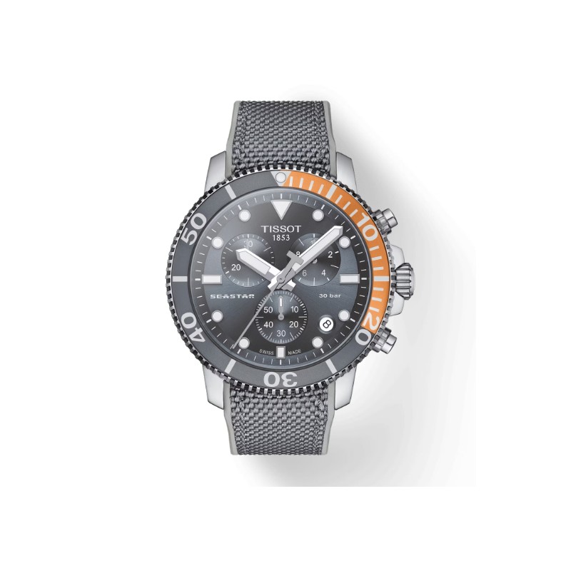 Parfaitement fiable jusqu'à une pression de 30 bar (300m), elle est la preuve qu'une montre de sport sous-marin et un chronographe peuvent être conciliés en un même objet. Le thème de la plongée est omniprésent avec des éléments tels qu'une lunette unidirectionnelle en aluminium, des aiguilles et index luminescents, une couronne et un fond de boite vissés. Enfin, la collection Tissot Seastar 1000 offre une multitude de choix concernant le bracelet : caoutchouc, maille milanaise, bi-matière, acier équipé d’une boucle de plongée.